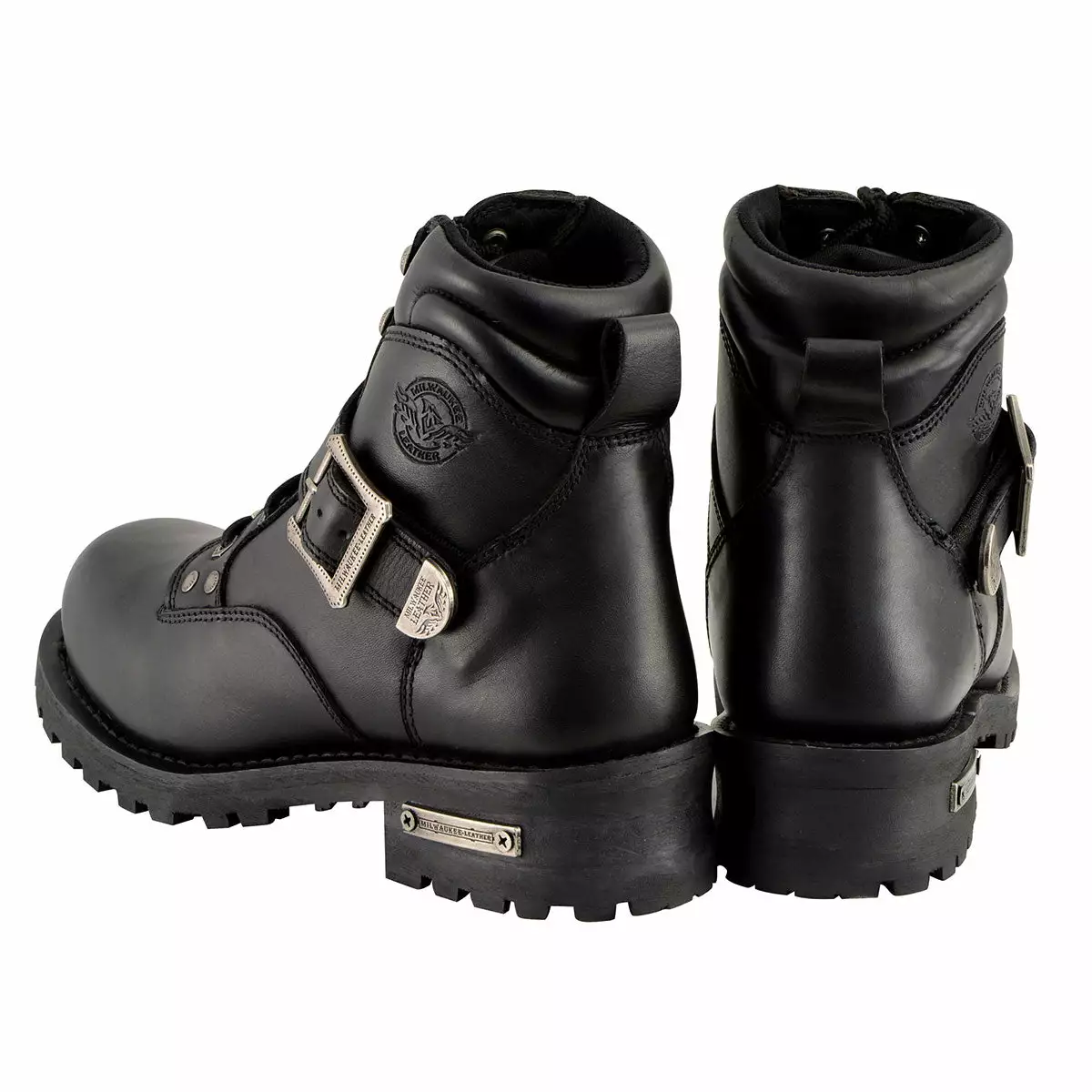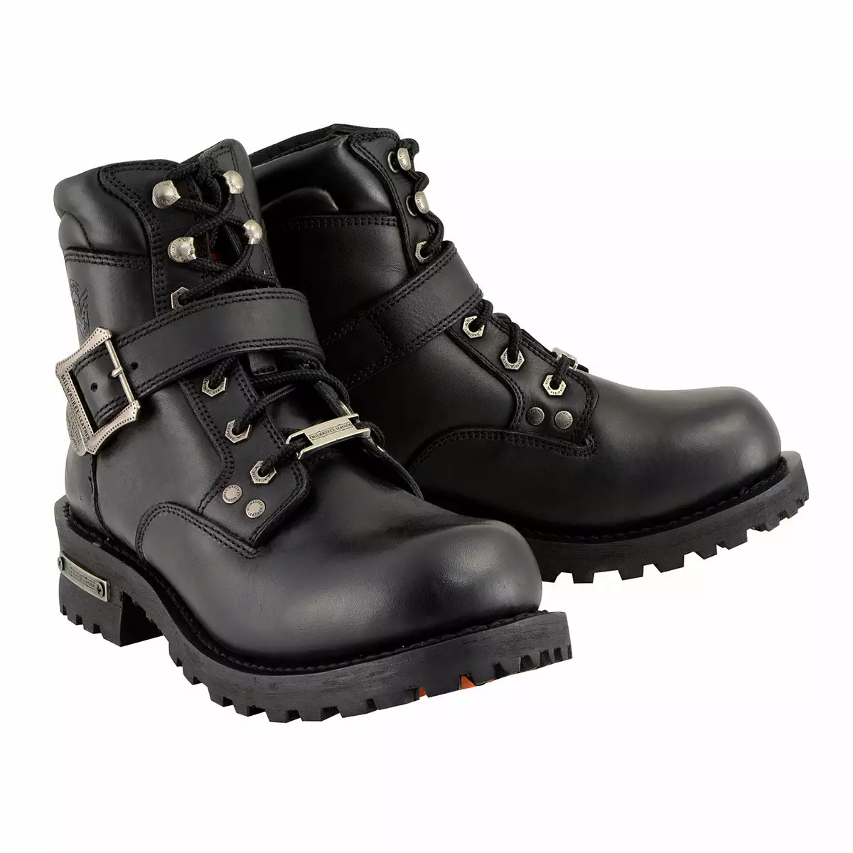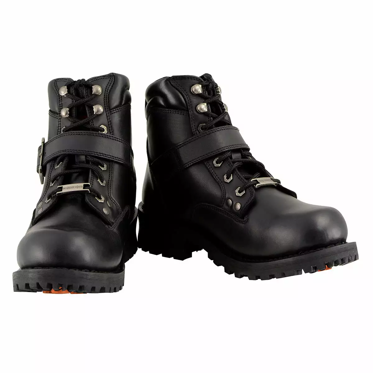 Milwaukee Leather MBM9010 Men’s Black Lace-Up 6-inch Engineer Boots with Side Buckle