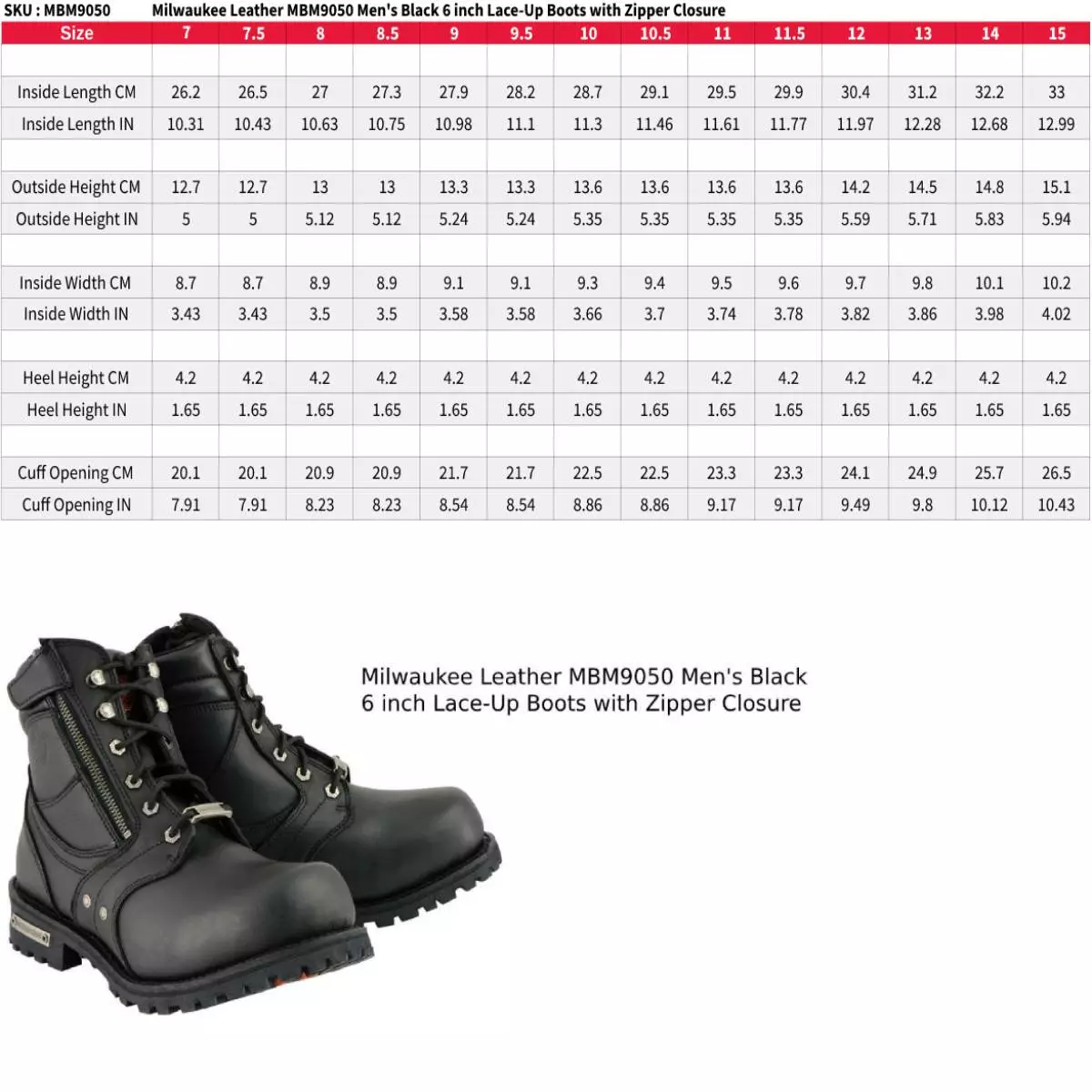 Milwaukee Leather MBM9050 Men’s Black 6-inch Lace-Up Boots with Zipper Closure