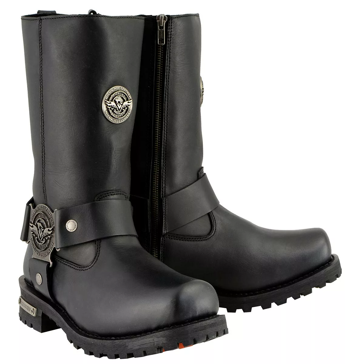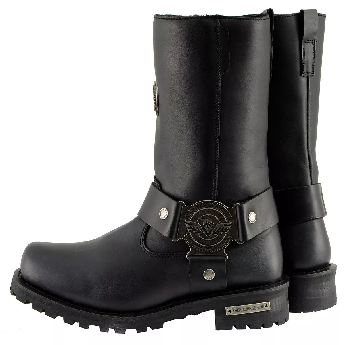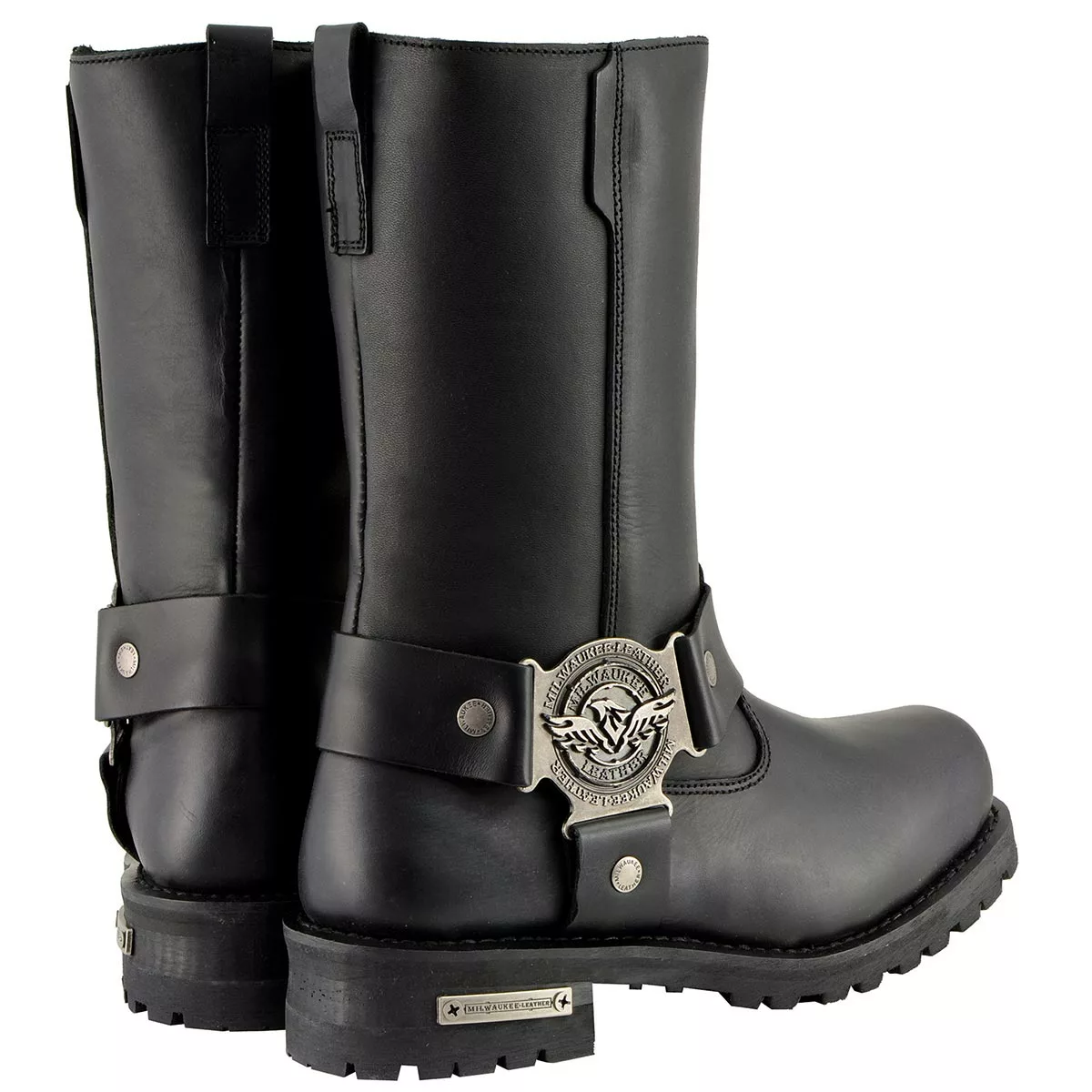 Milwaukee Leather MBM9060W Men’s Black ‘Wide-Width’ 11-inch Classic Harness Square Toe Boots