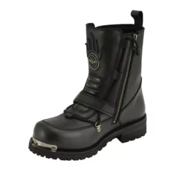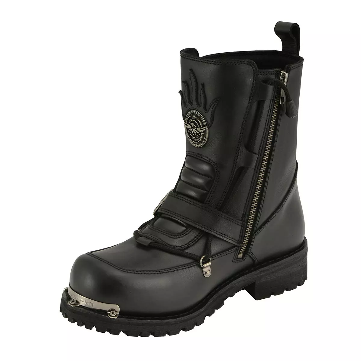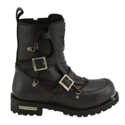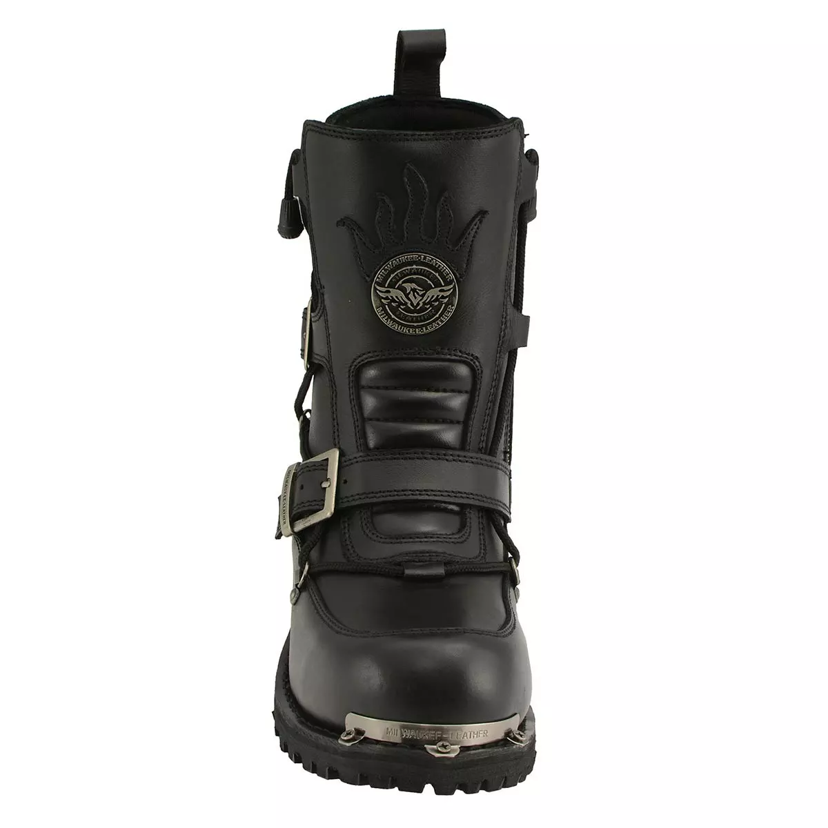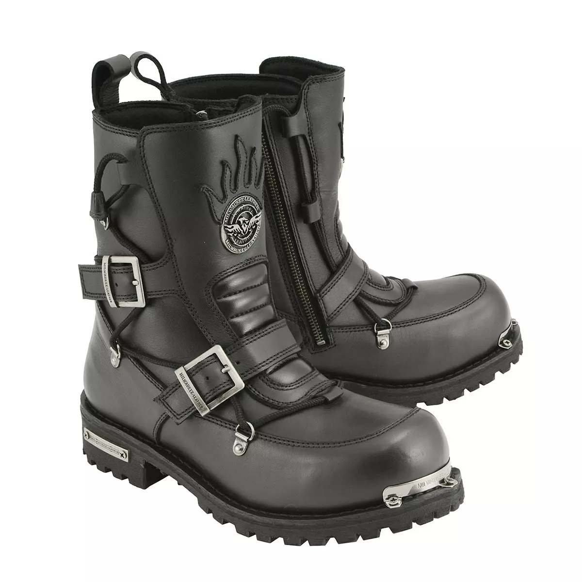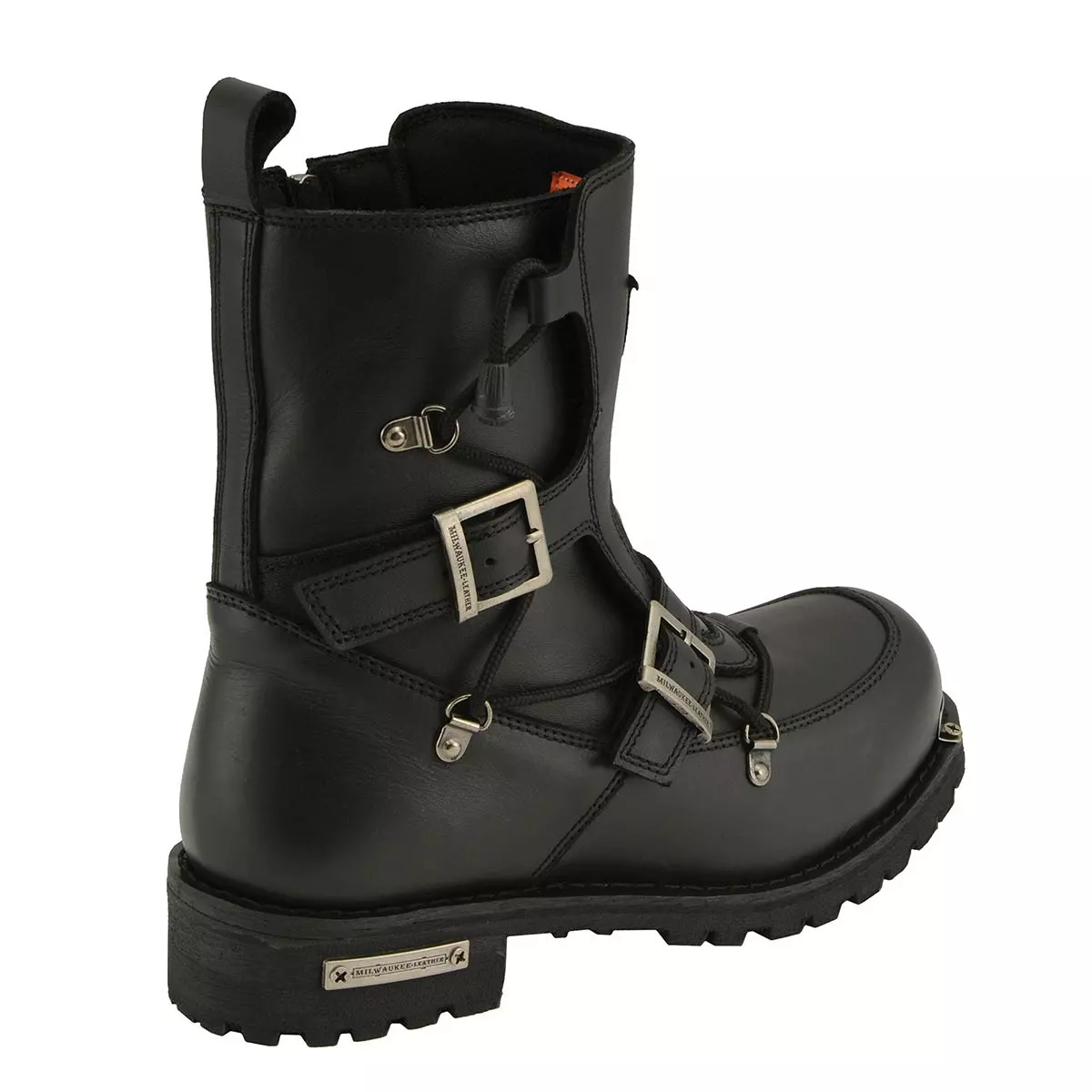 Milwaukee Leather MBM9076 Men’s Black ‘Tactical’ Logger Leather Boots with Buckle Enhancement