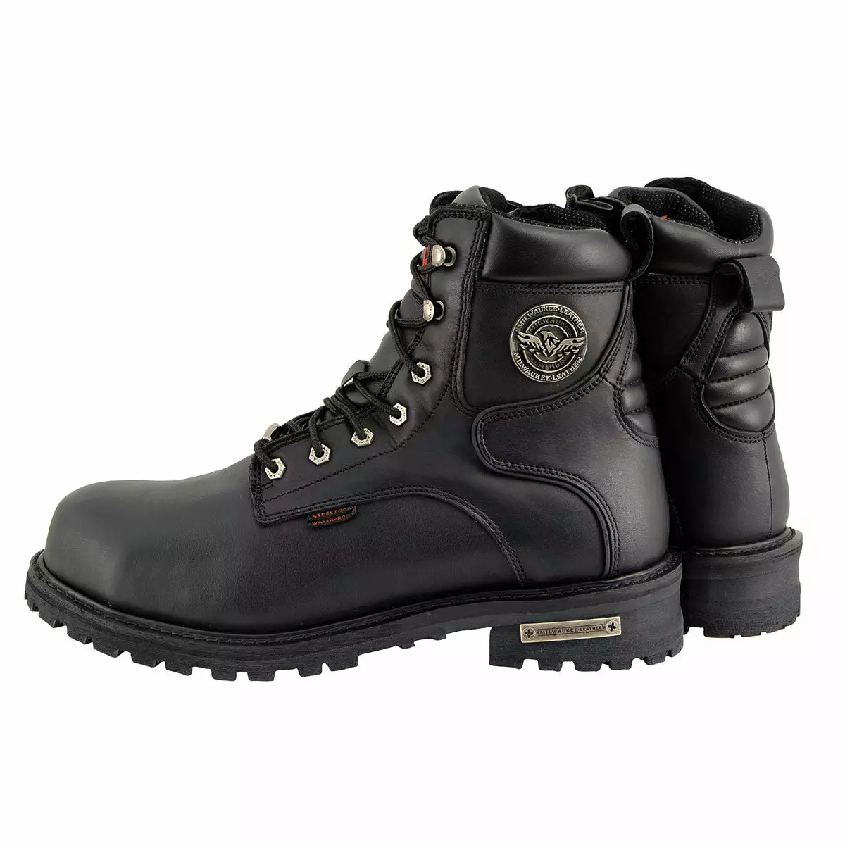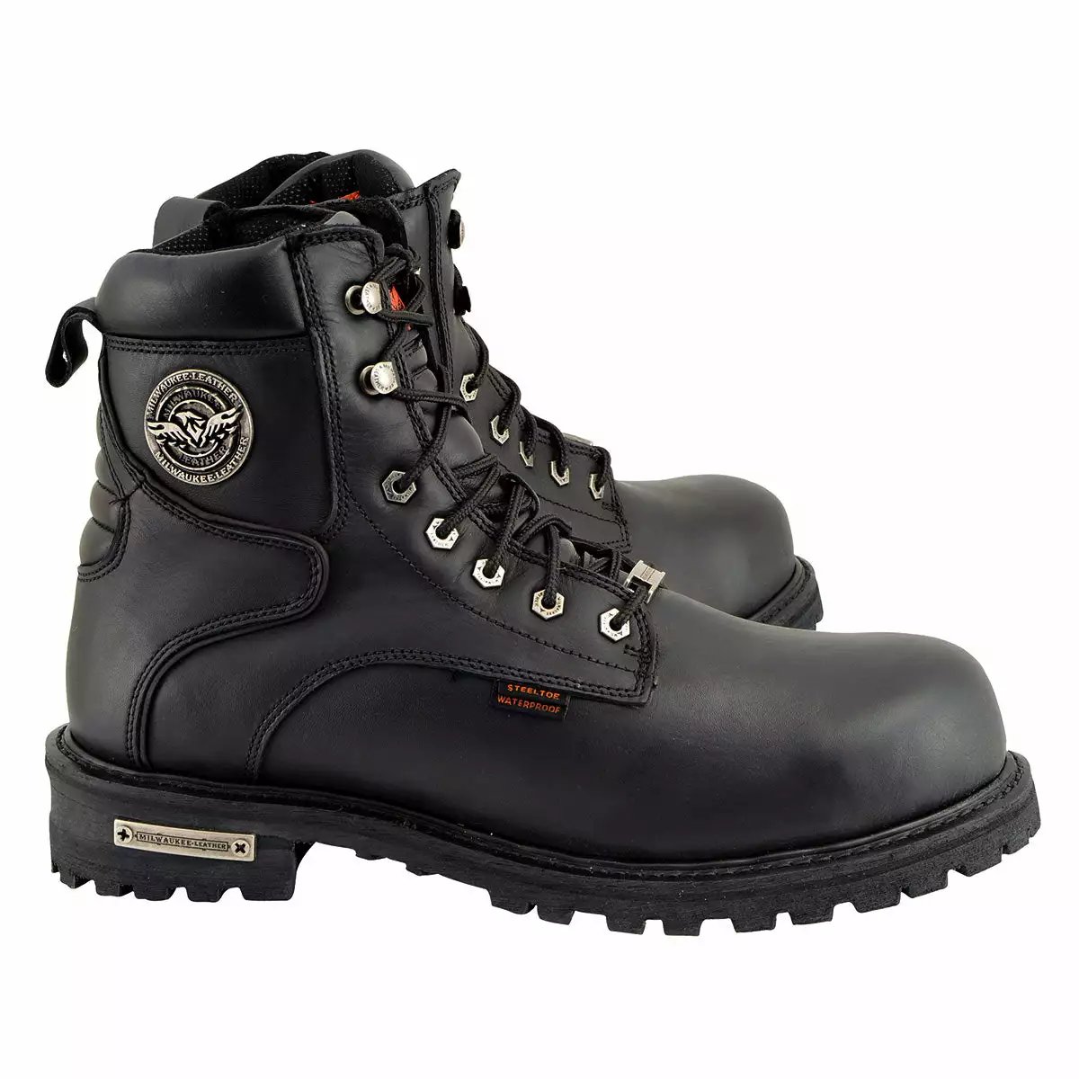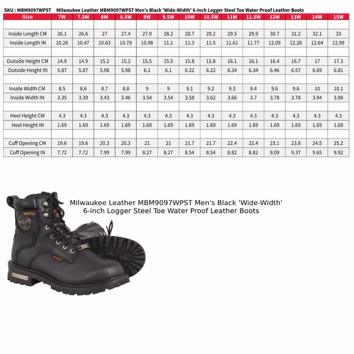 Milwaukee Leather MBM9097WPST Men’s Black ‘Wide-Width’ 6-inch Logger Steel Toe Water Proof Leather Boots