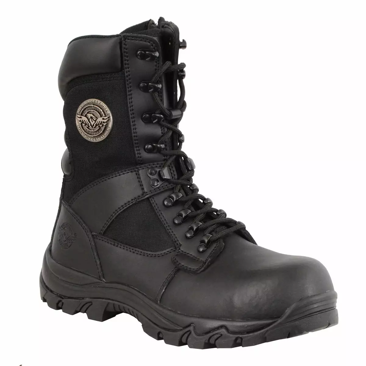 Milwaukee Leather MBM9100 Menโs Black Tactical Leather Boots with Composite Toe