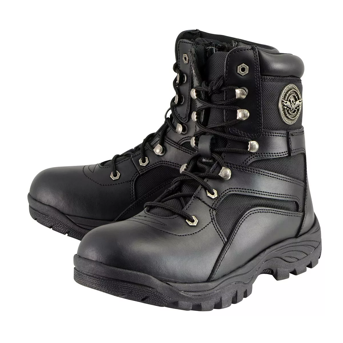 Take on Any Mission in Tactical Boots from Milwaukee Leather Performance Apparel. These Boots Feature a Leather and Nylon Upper with Plain Toe Design and Side Zipper Access. A Lace Up Front Allows for A Secure Fit, While the Anti Slip and Oil Resistant Outsole Provides Excellent Traction No Matter the Terrain. Step with Confidence with Footwear from Milwaukee Leather Performance Apparel.