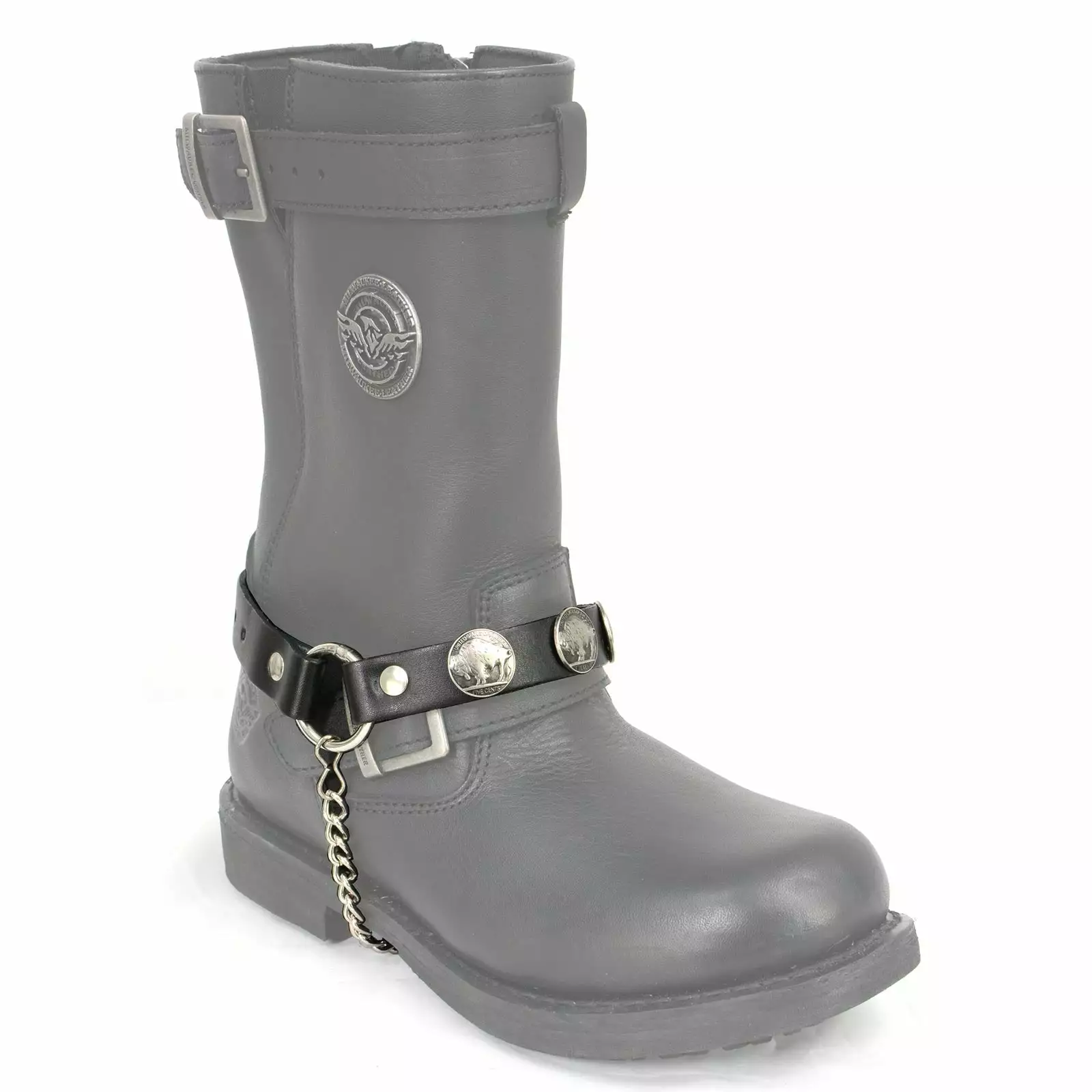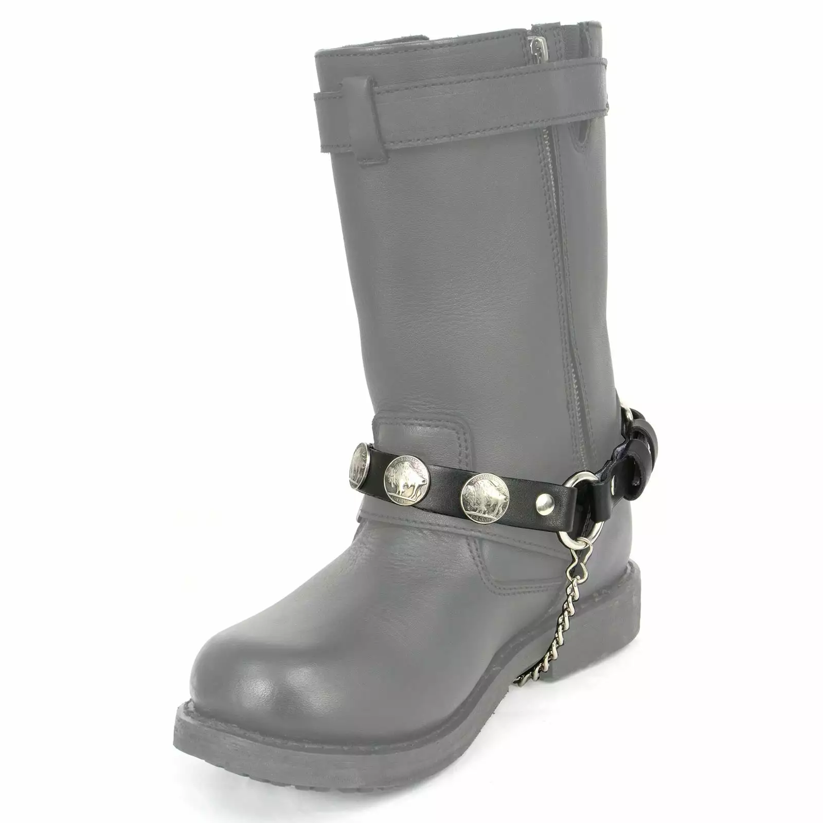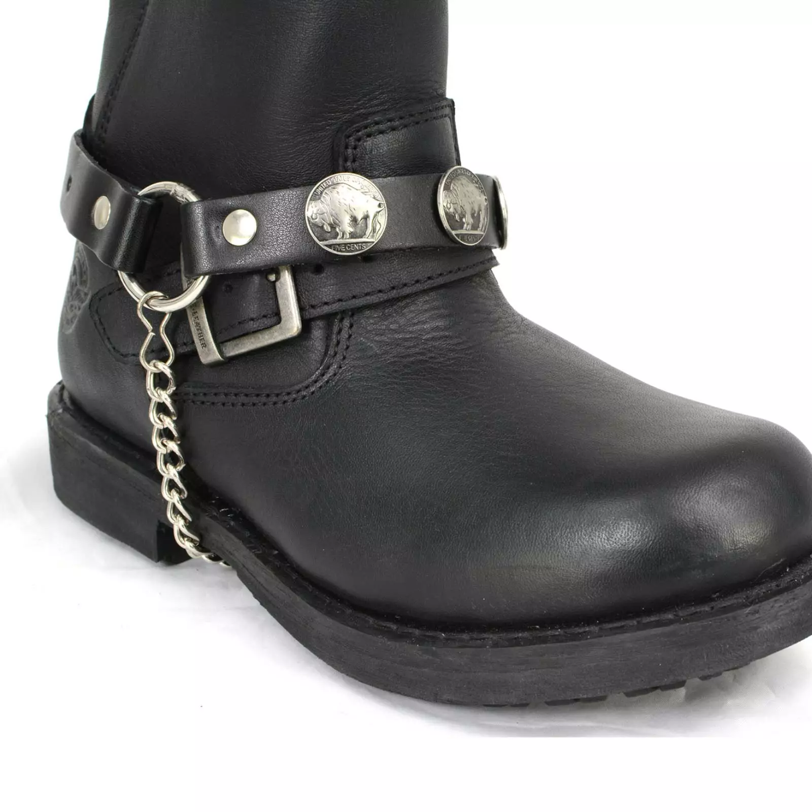 Milwaukee Leather MLA3002 Silver Vintage Buffalo Coin Motorcycle Boot Biker Chain