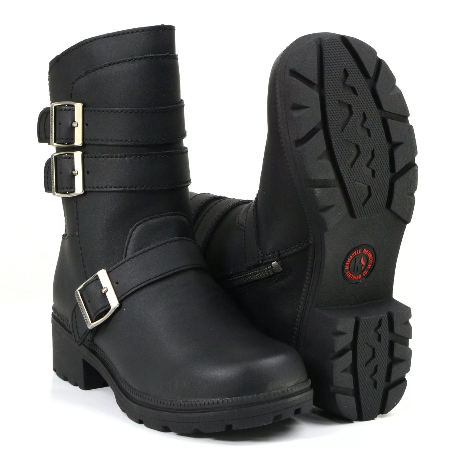 Milwaukee Motorcycle Clothing Company MB233 Road Captain Leather Women’s Black Motorcycle Boots