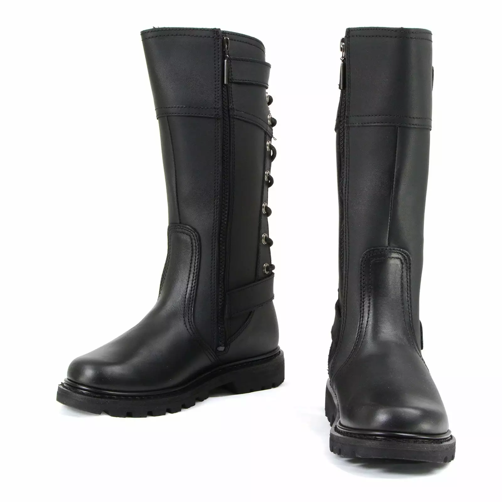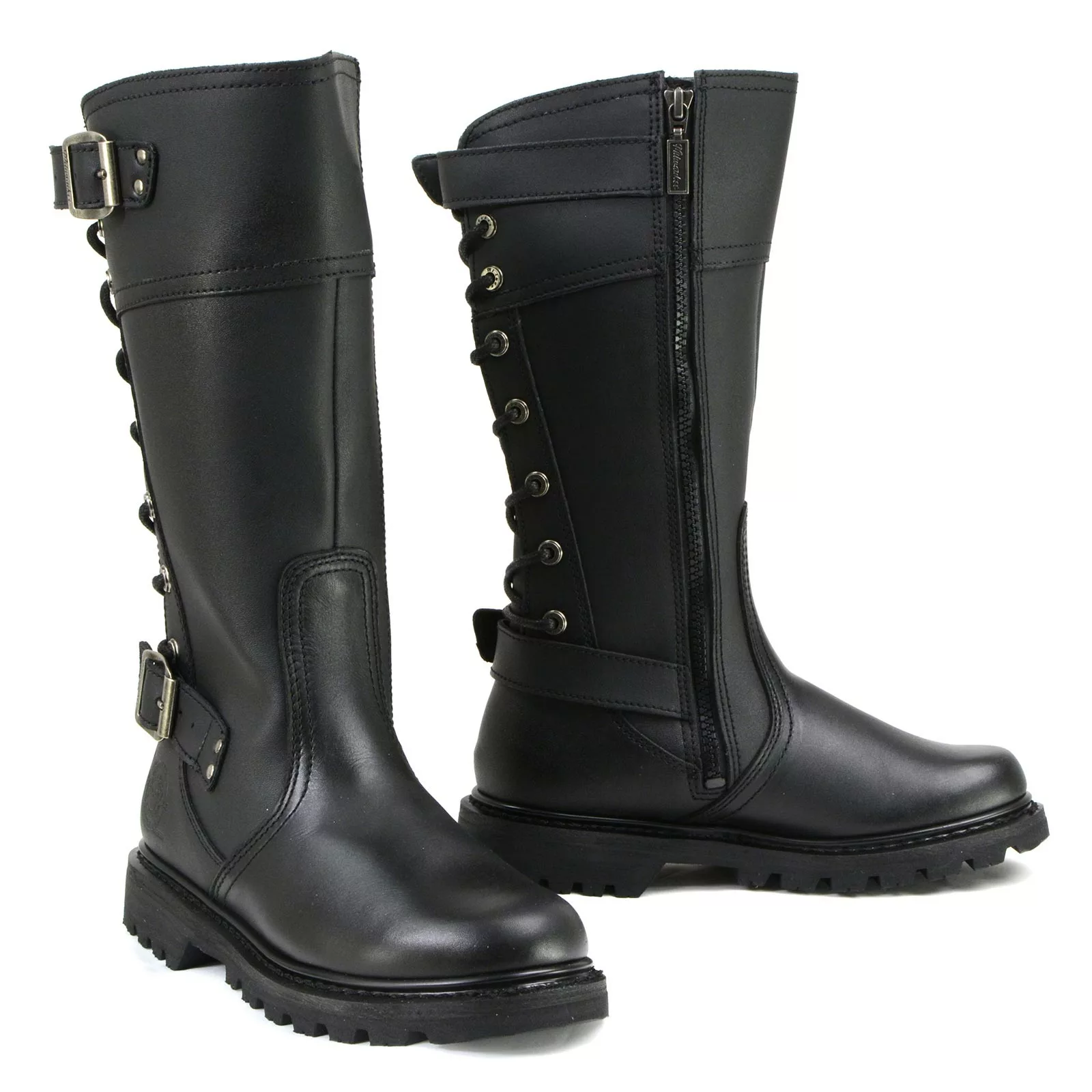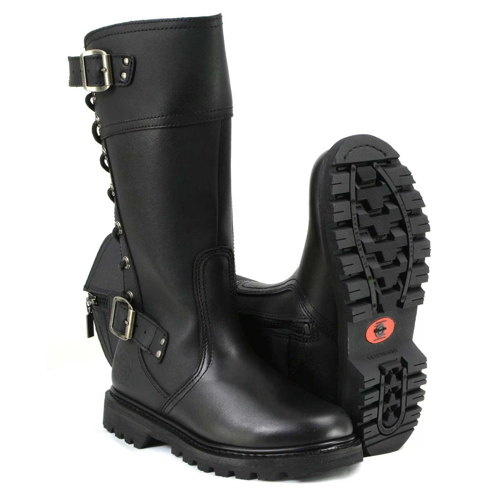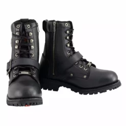 Hit The Highway in Style with This Cool Motorcycle Boot. Durable Full Grain Leather Upper, 12-Inch Shaft Height, Side Zipper Entry, Adjustable Back Laces, Comfortable Freedom Flex Construction, Removable Cushioning Footbed, Sturdy Rubber Sole, 1-Inch Heel Height.