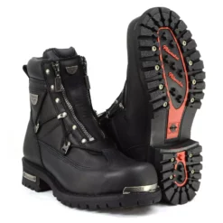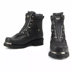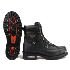 Men’s 6 inch motorcycle boot is made of full leather upper material and has a double front zipper for easy-on/easy-off. Freedom-flex construction insole is removable and washable. Outsole is oil resistant, non-skid and non-marking. Designed for style and comfort.