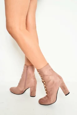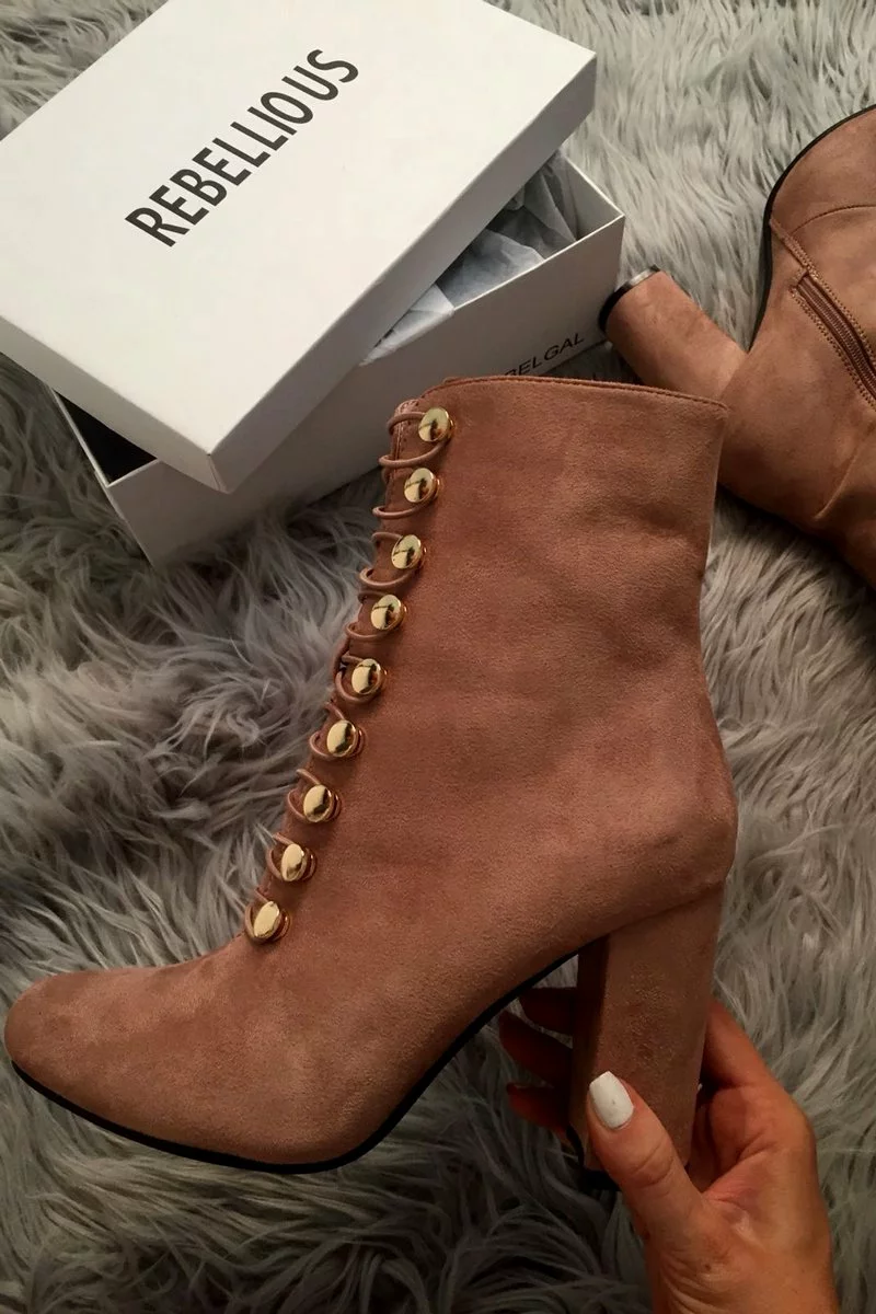 Slay the game in the Hadlyn Pink Faux Suede Button Detail Ankle Boots, complete with gold button detailing, zip side and block heel. Pair with jeans and a cute blazer for off-duty vibes.