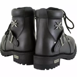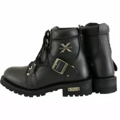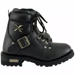 Part of Xelement Performance Footwear Line. One of the few Ladies Good Year Welt Construction boots (long-term durability, resole-able, better comfort when wore in). Women’s Advanced Xelement Biker boot, built for comfort, durability, and exclusive traction control sole. Gain added protection and style with extra heavy duty traction sole. Made of top-quality full grain oil leather featuring; black rubber outsole, lace-up design with buckle strap, Designed to Work with Your Body’s Temperature. Xelement logo on the ankle part of the boot and on the heel plate. The heel plate can be removed with screws. Unique design and advanced features made for bikers comfort, protection, and extra-long durability.