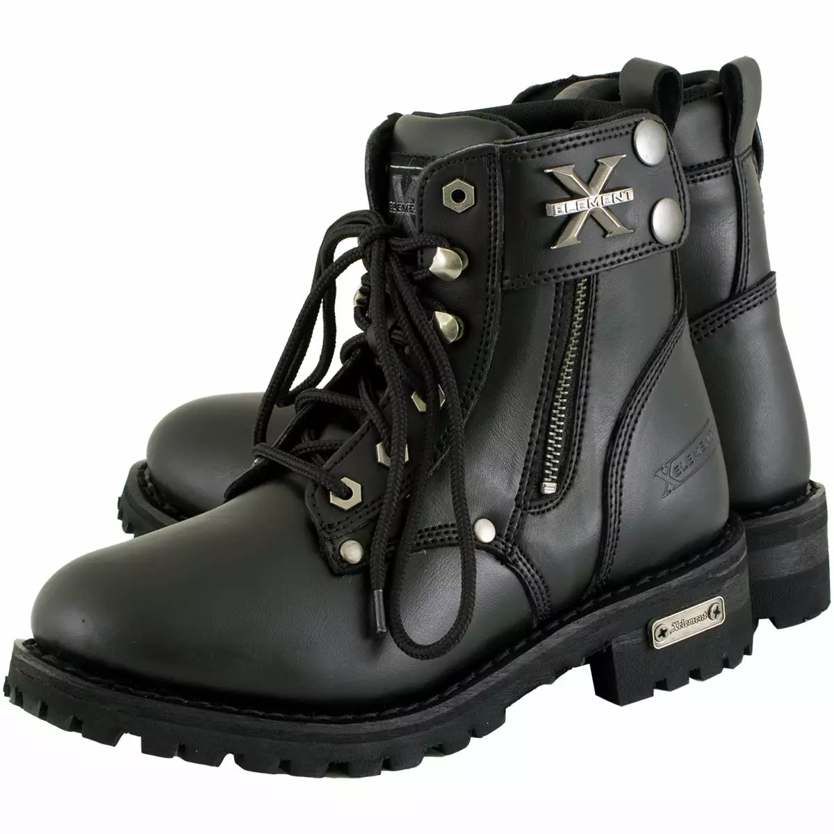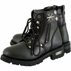 The perfect boot for Women, Women’s Xelement Zipper Righteous Motorcycle Boot. Have fun in this killer boot made from high quality full grain leather. Be daring and get compliments and attention for its unique styling. This is the most technologically advanced men’s biker boot built for long-term durability, comfort, protection, and style with an extra heavy duty designer lug sole. The steel name plate on side and front of boot for added aggressive look. Good Year Welt Construction boots (long term durability, resole-able, better comfort when wore in). Exclusive to LeatherUp.