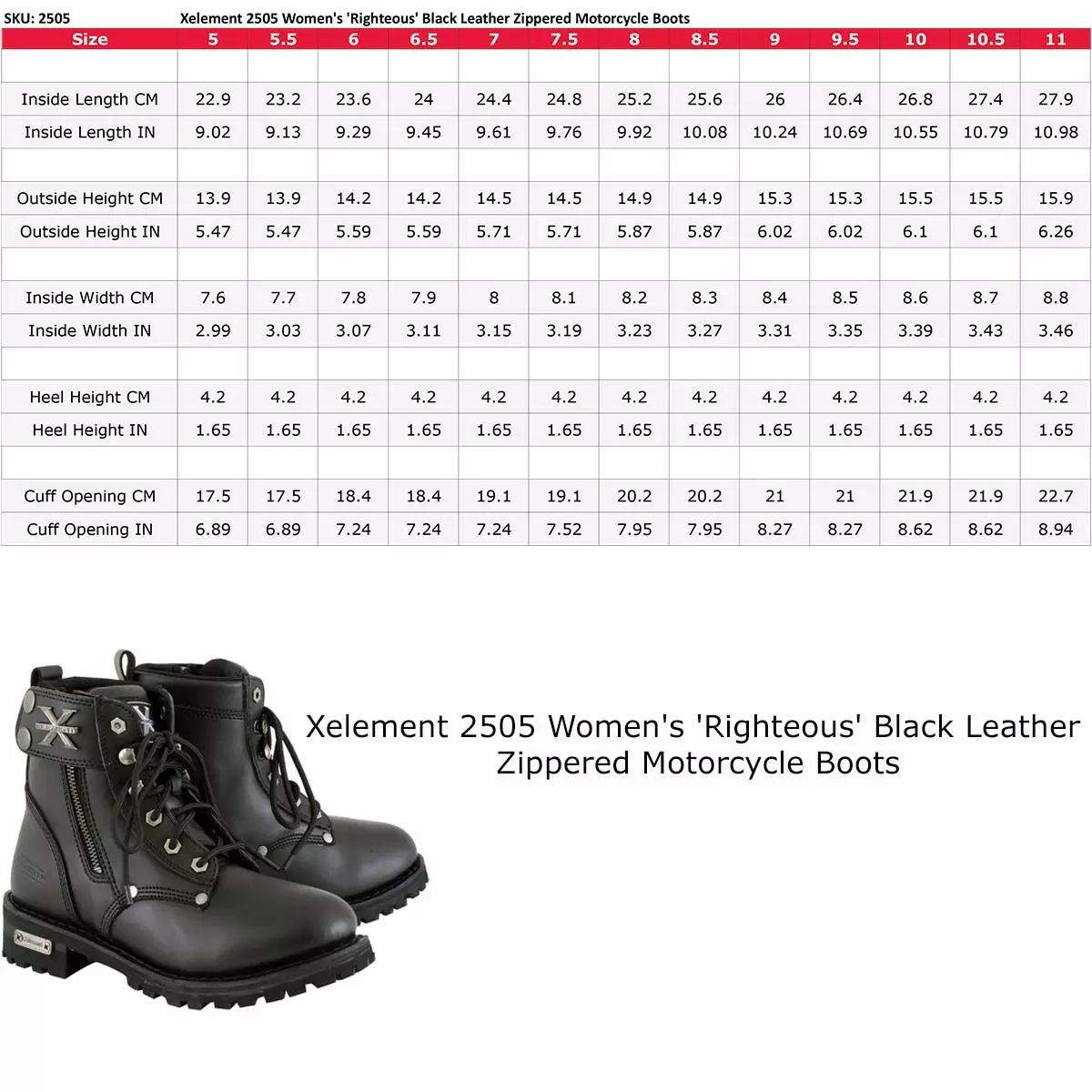 Xelement 2505 Women’s Black ‘Righteous’ Leather Zippered Motorcycle Boots