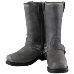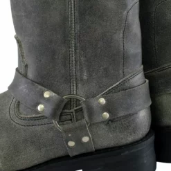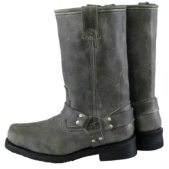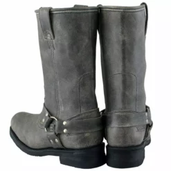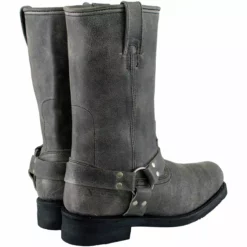 Xelement LU1605 Men’s Classic Stone Wash Grey 13-inch Leather Harness Motorcycle Boots